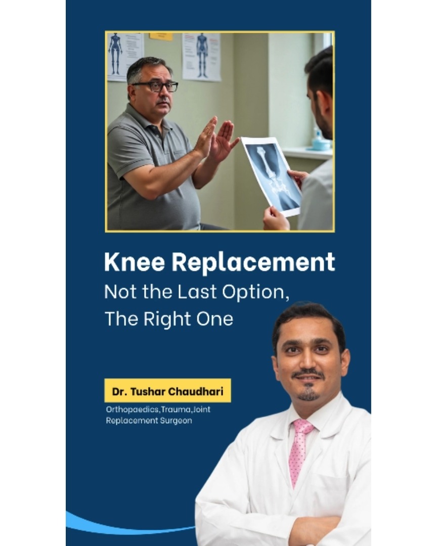 Knee replacement? No, no… I don’t want it. That’s a common reaction but here’s the truth. When knee pain and knee osteoarthritis reach an advanced stage, delaying the right treatment can reduce outcomes. Relying only on physiotherapy, painkillers, or alternative treatments at the wrong time may worsen joint damage and muscle weakness. In such cases, knee replacement surgery isn’t the last option it’s the right option. Timely consultation with an experienced orthopedic surgeon helps you choose the correct treatment at the correct stage, ensuring better mobility, less pain, and improved quality of life. Choose wisely. Choose timely care. Knee pain caused by advanced knee osteoarthritis often needs expert evaluation. A skilled orthopedic surgeon can guide you on knee replacement surgery at the right time. Early decision-making, correct diagnosis, and proper treatment improve recovery, mobility, and long-term joint health while avoiding delayed complications. 📞 Book Your Appointment Today! Visit: www.drtusharchaudhari.com Call or WhatsApp on 9820818092 #kneereplacement #kneepain #osteoarthritis #orthopedicsurgeon #jointcare #kneesurgery #painfree #mobilitymatters #healthyliving #orthocare